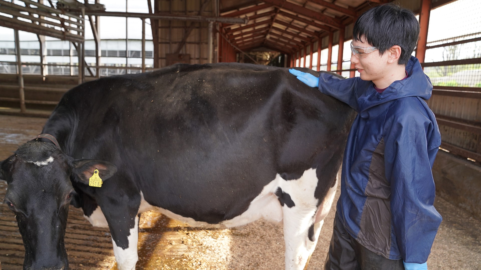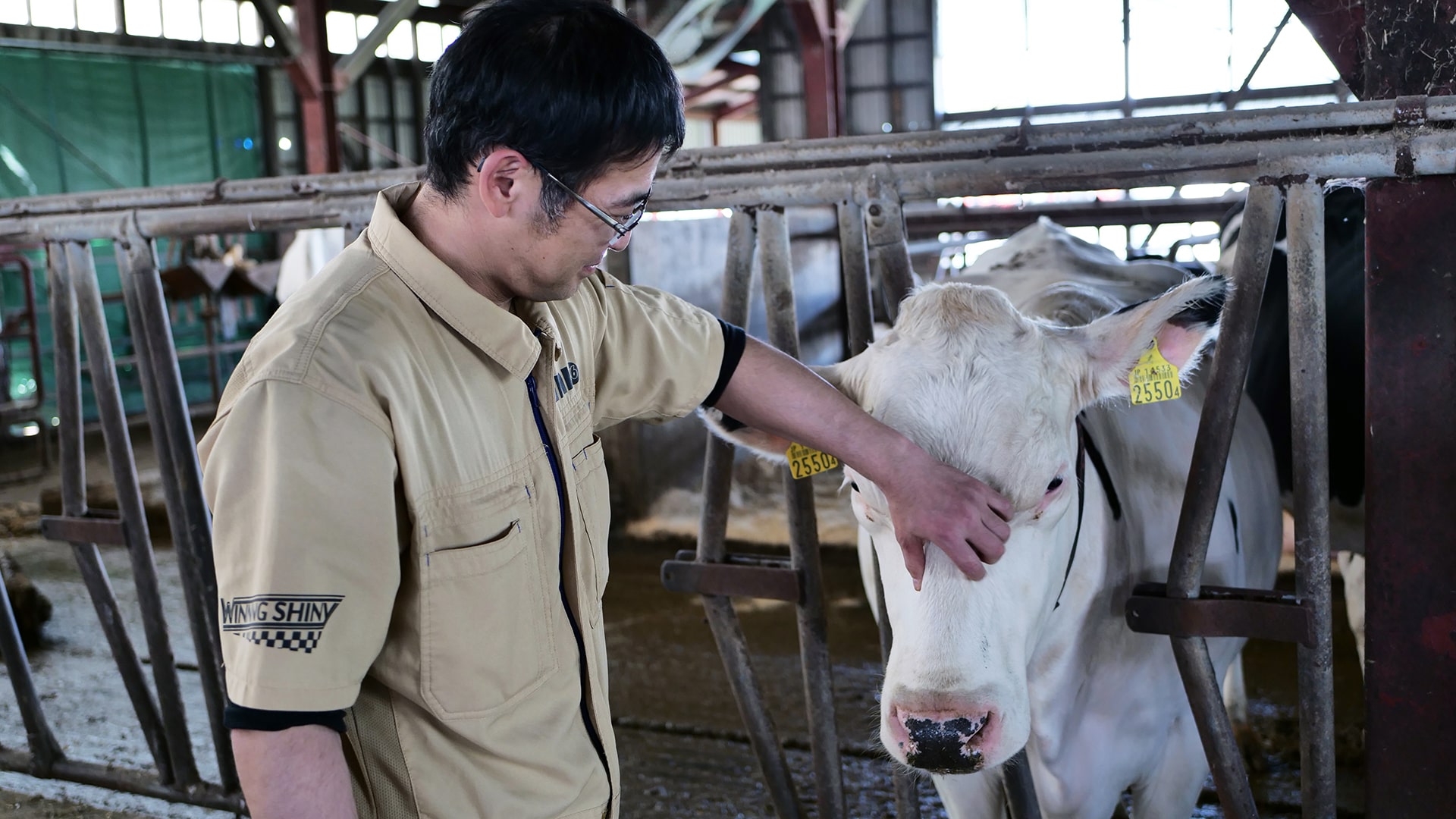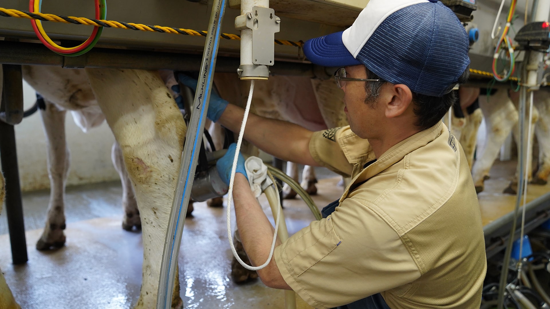 弊社は機械化が進んでいることで、労働負荷が少なく、勤務時間が短いことが特徴です。牛舎もいつ誰に見られても「キレイですね」と言ってもらえるように環境整備に努めています。牛は大切に飼育した分、しっかりと応えてくれる生き物です。乳質の向上にも取り組んでいて、良質な生産者として表彰を受けていることにもやりがいを感じます。職場の人間関係も良く、1人ではなく仲間と協力して働けるのも魅力です。
